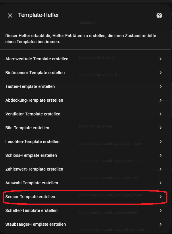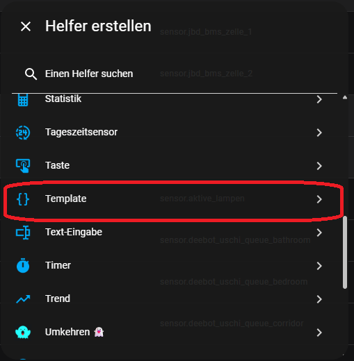 . Geht auf Helfer erstellen und wählt den Typ Template und Sensor. Setzt die Parameter wie auf dem rechten Bild. Für den Zustand nutzt ihr untenstehendes Template.